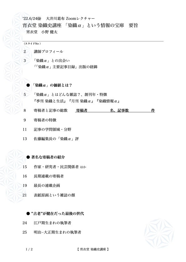 「『染織α 主要記事目録』出版記念 オンライン対談」、