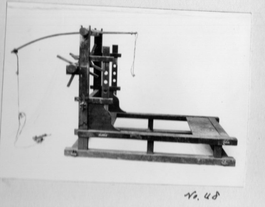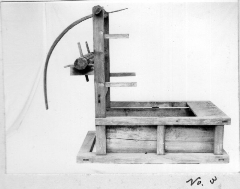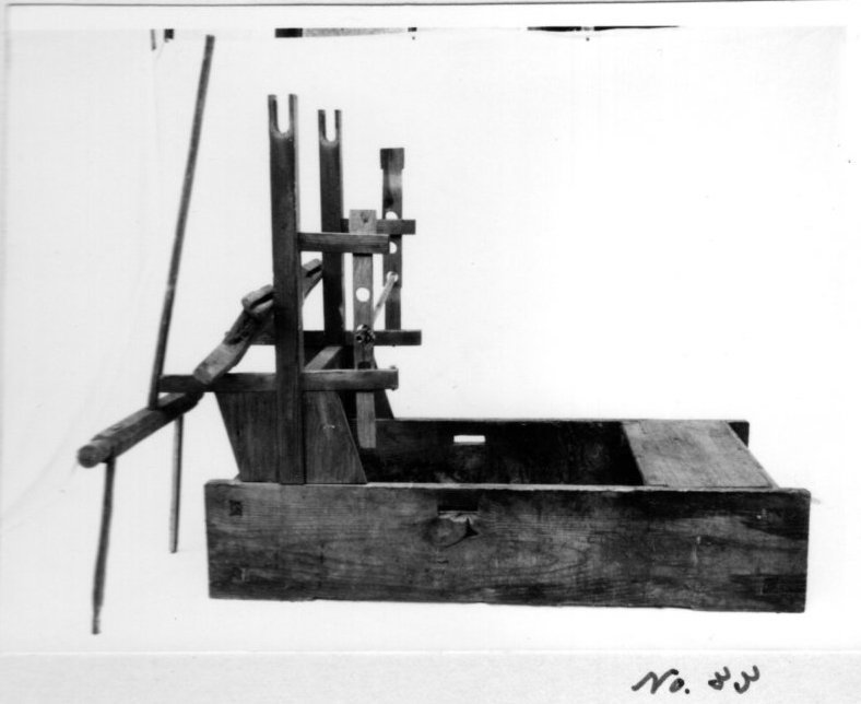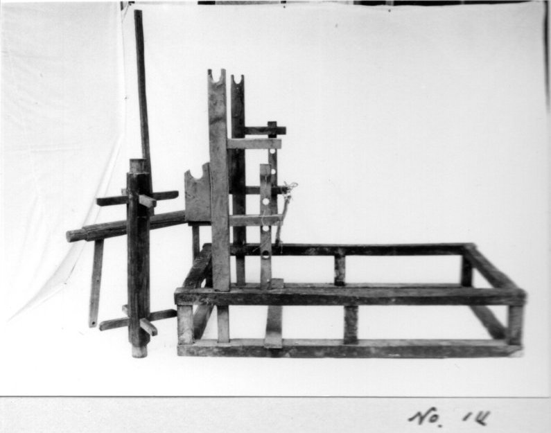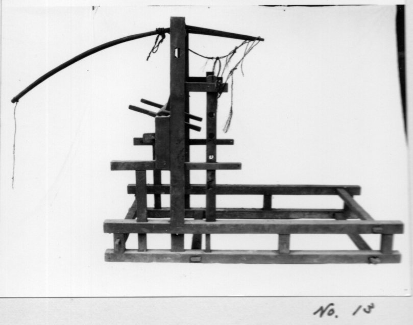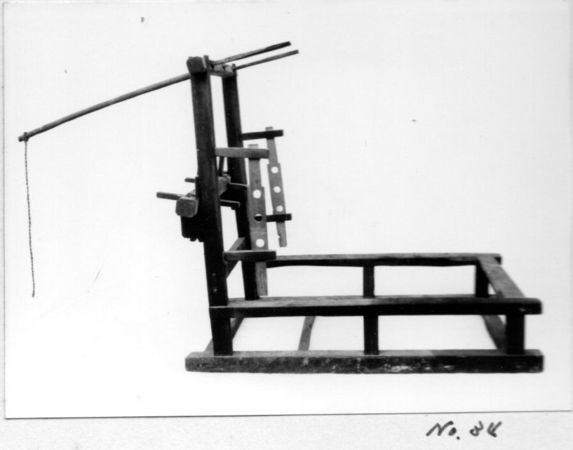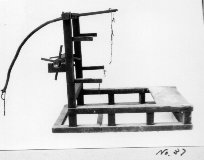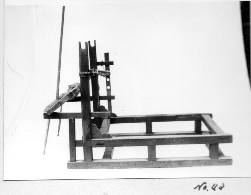 上げることによって、腰掛けるように織る機 便宜上フレーム型と名付けた