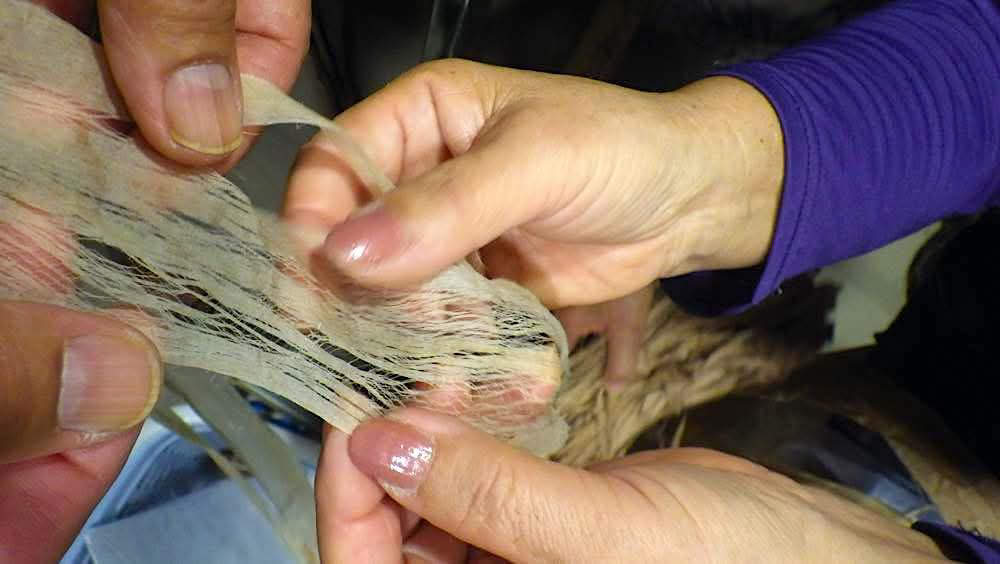 これまでの「太布」「しな布」に続く”樹皮の布”の一つであり近年では有名漫画の影響などもあり、アイヌの衣服としてご存じの方も多いことでしょう