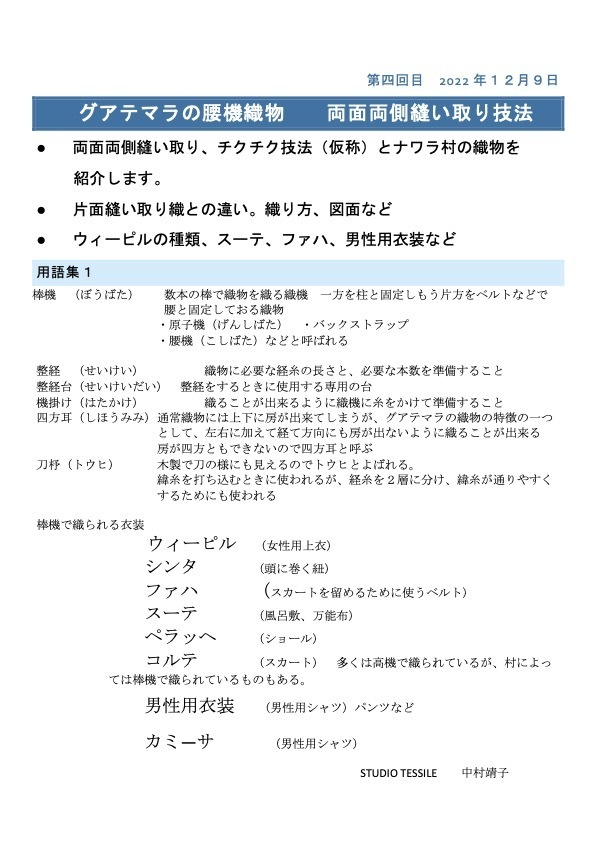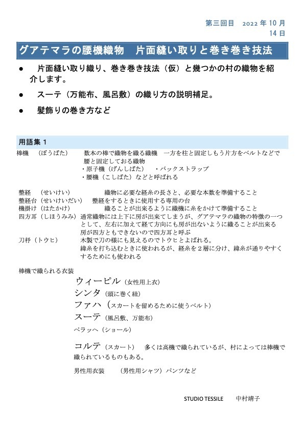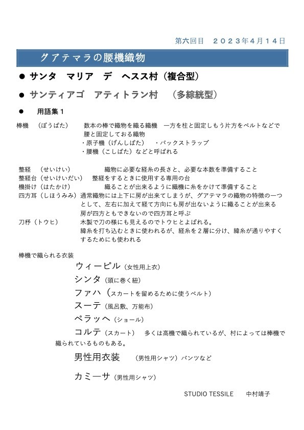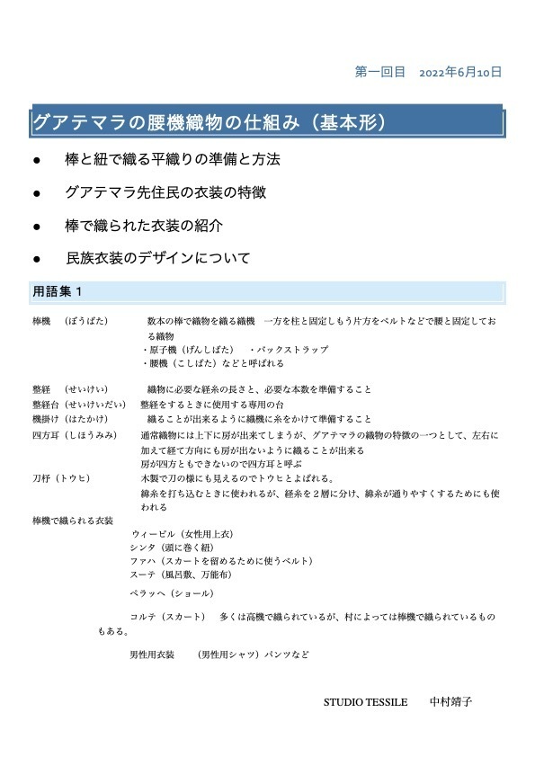 中村靖子 グアテマラの織物 第1回 レジュメ&用語集