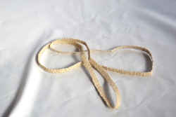 ゆふたすきは、経糸と緯糸が切れずに一本につながっており、はじめもおわりもなく、生命が永遠にまわっていきます。織機は使わずに、へらと棒だけで作ります。織り以前の最も原初の衣といえるでしょう。