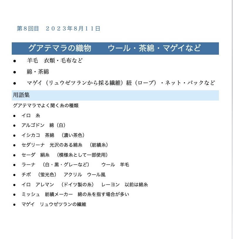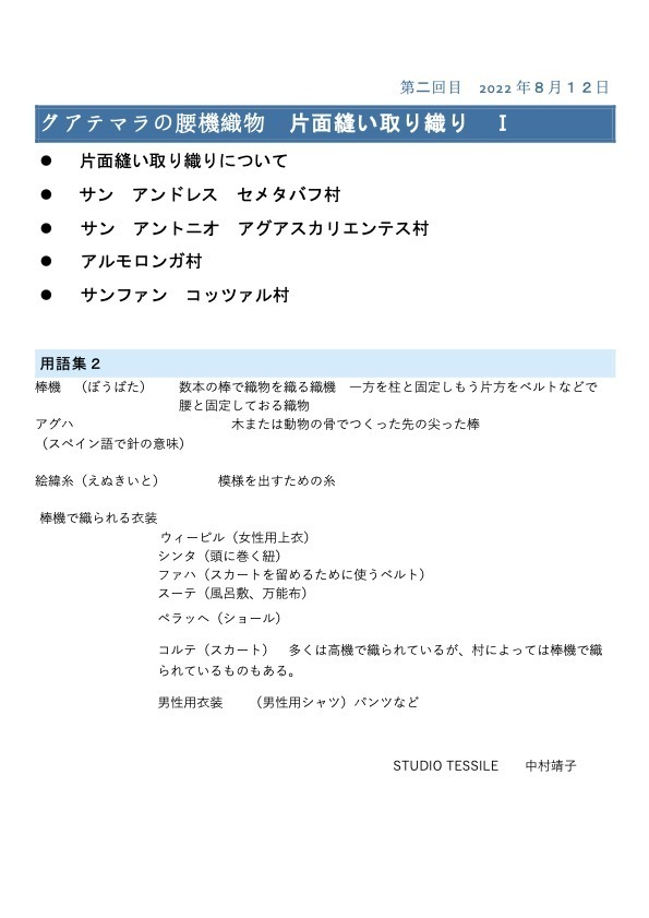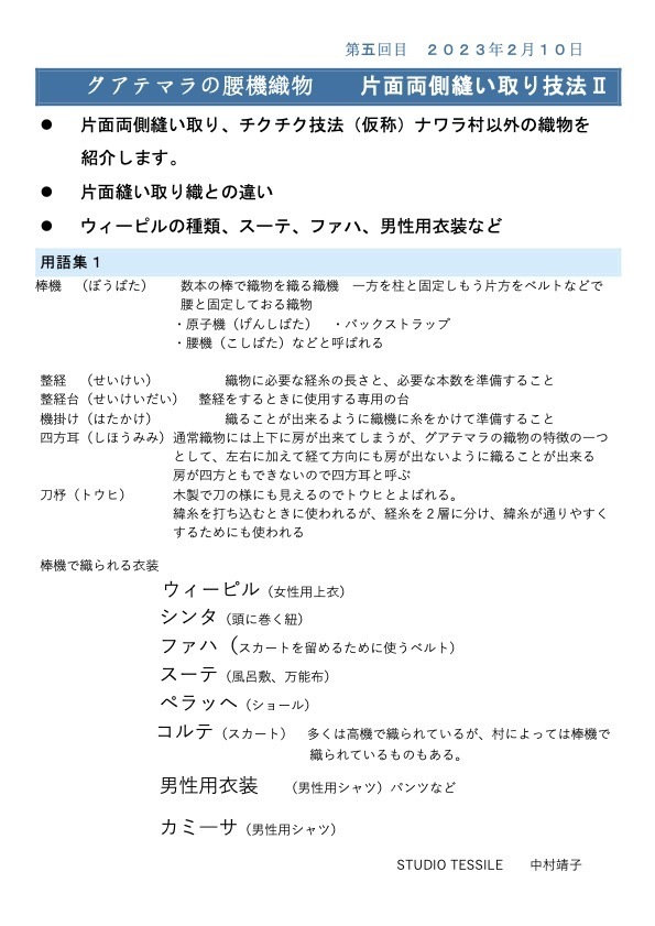 中村靖子 グアテマラの織物 第1回 レジュメ&用語集