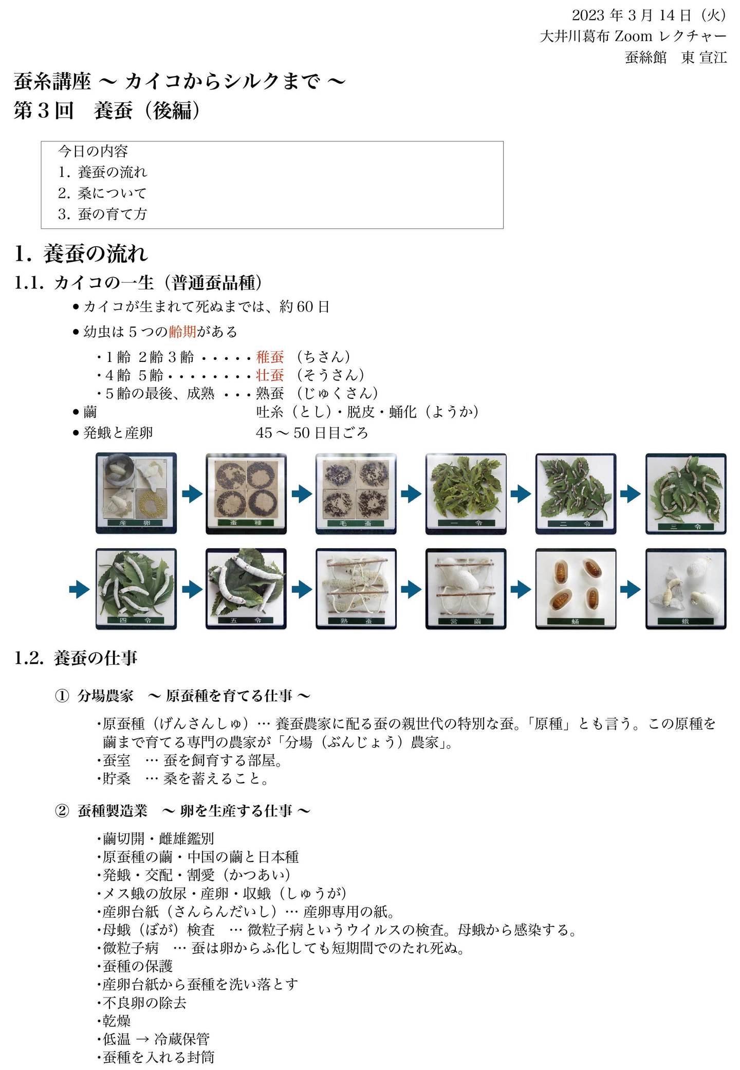 2023年3月14日 蚕糸講座③ レジュメ