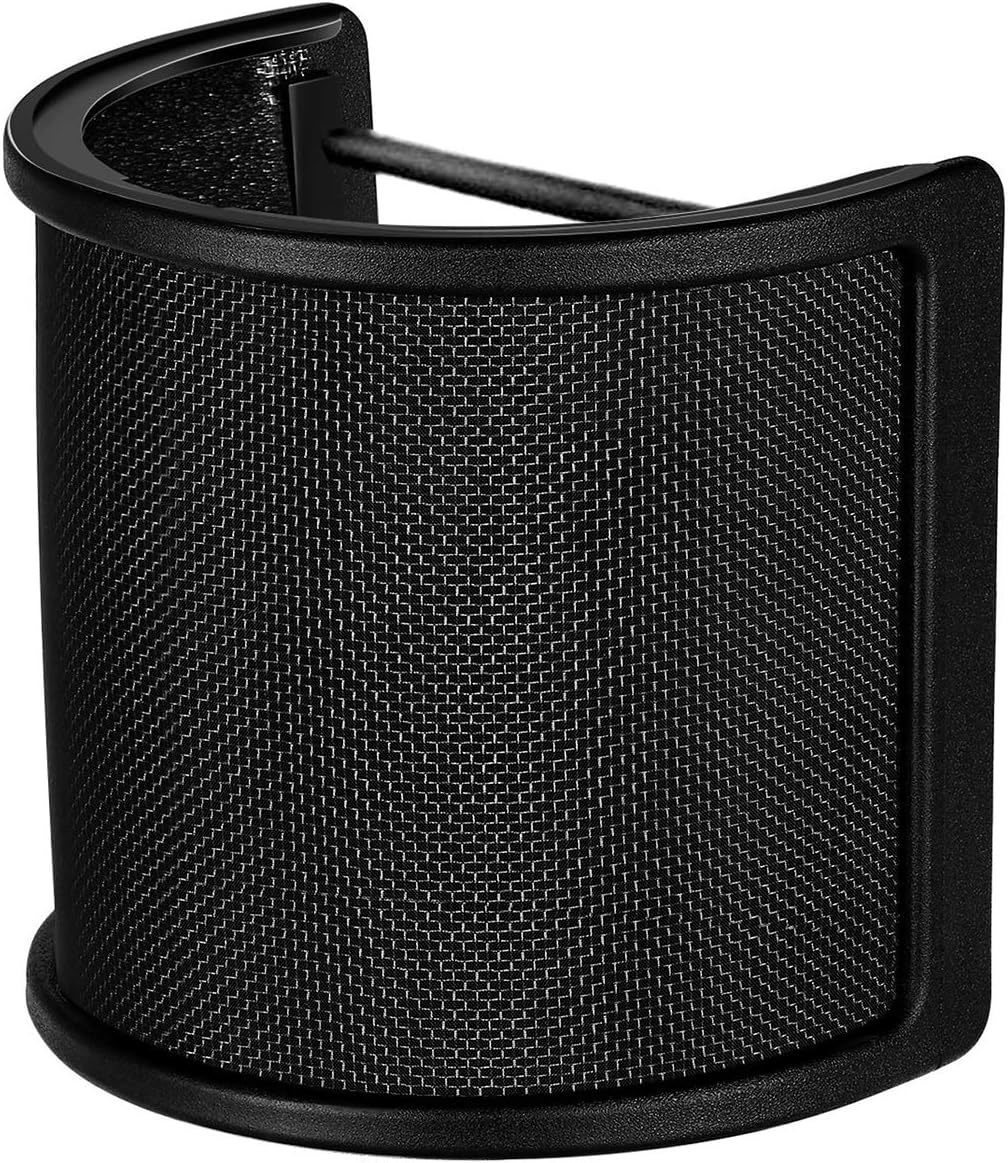 Tuloka マイクポップガード 金属ネット層 ウインドスクリーン ノイズ防止 マイクフィルタ 45mm-63mmのマイク対応 弾力ゴムバンド付属 (ブラック)