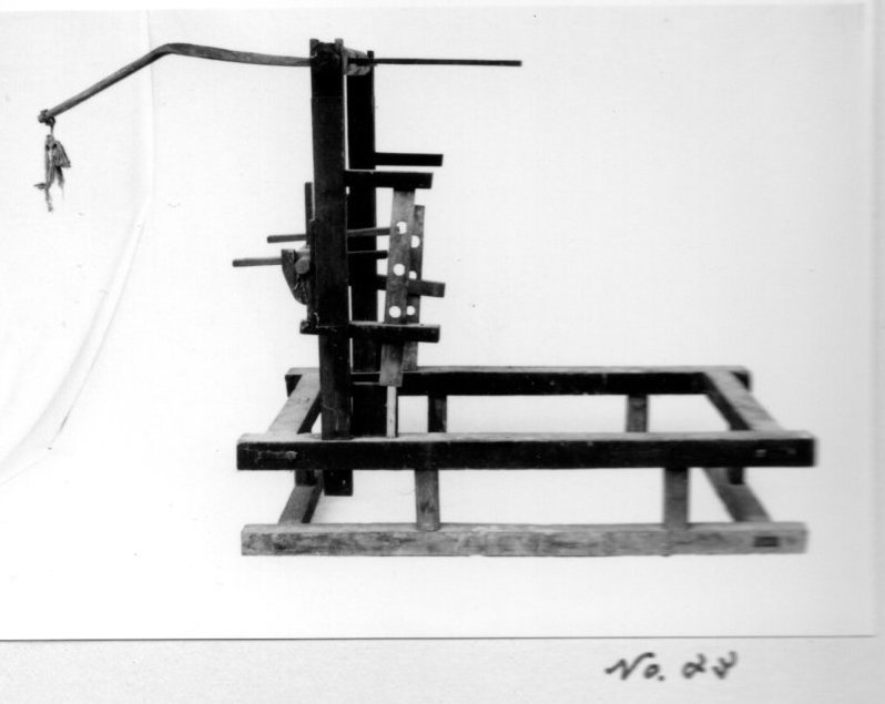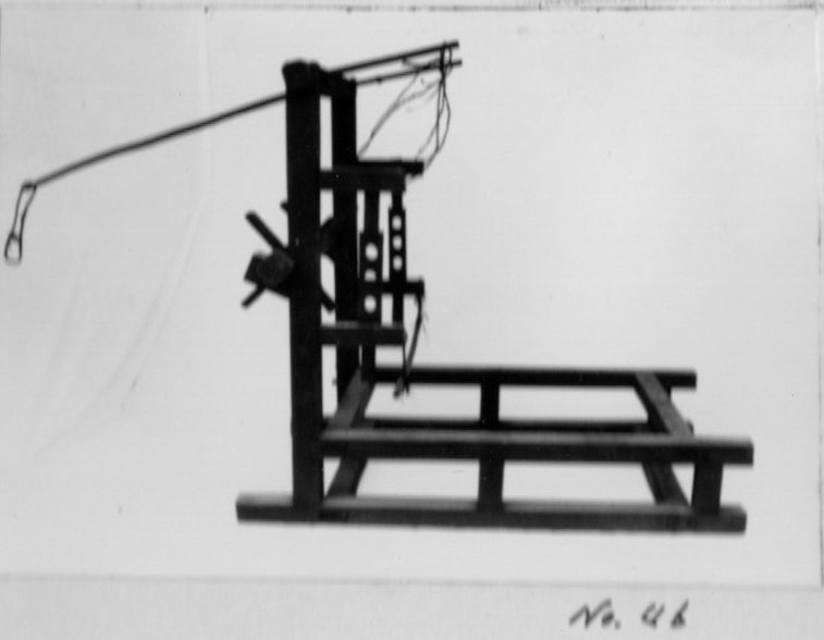 上げることによって、腰掛けるように織る機 便宜上フレーム型と名付けた