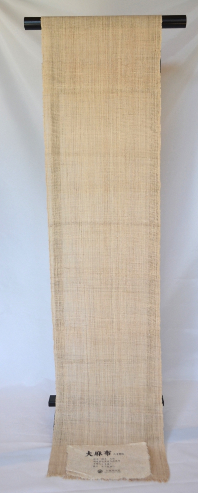 平成になってから日本で初めて作られた貴重な帯地です。日本古来の布でありながら、今栽培から生産まで行っているところは日本でここ一カ所となってしまいました。栽培許可が必要なため、誰でも作れるモノではありません。